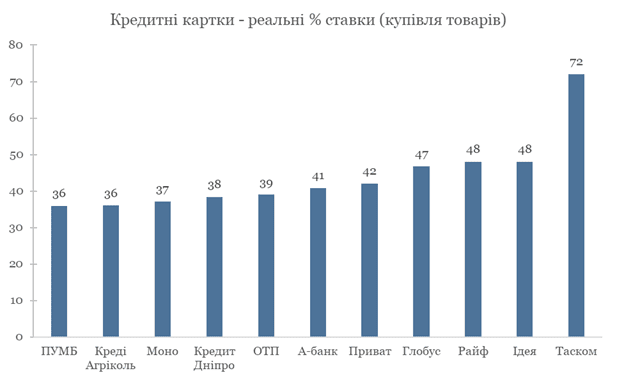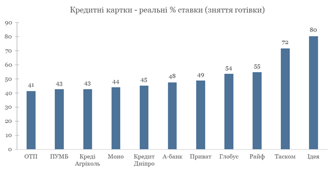 Переплата за кредитними картками, % річних